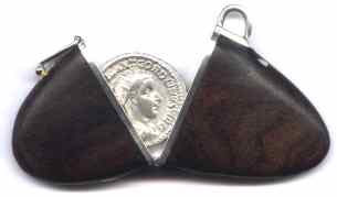 | Decision maker pendant The pendant contains a silver Roman coin from AD245. The piece is one of a series of "decision making devices" that I have made.